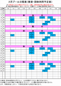 2026年2月プール日程表(団体予定表)