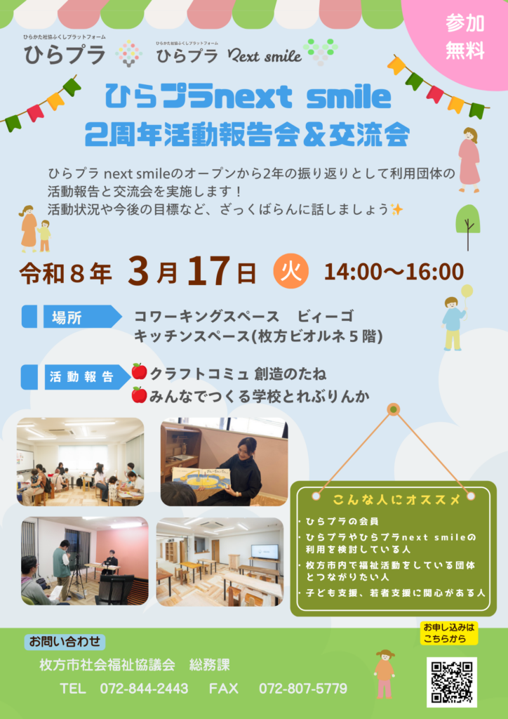 3月17日(火) 「ひらプラnextsmile 2周年活動報告会&交流会」を開催します!